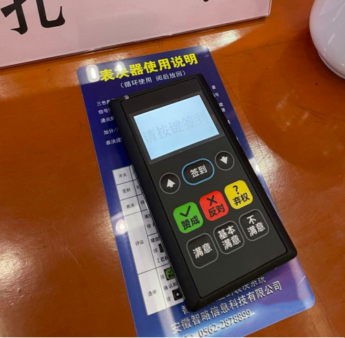 2、電子表決:會議電子表決系統(tǒng)的表決器,具有“贊成”、“反對”、“棄權(quán)”等按鍵鮮明,操作簡易,待機(jī)持久,會前反復(fù)測試,會中現(xiàn)場支持。特別適合于市、縣(區(qū))人民代表大會涉及表決事項時使用,數(shù)據(jù)準(zhǔn)確,能和大會主持詞、顯示屏同步協(xié)調(diào)使用,頗受“人代會”的歡迎和好評。